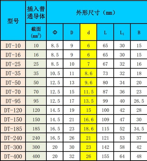 國標(biāo)異型銅導(dǎo)體-選擇國標(biāo)DT銅接線端子(參考)